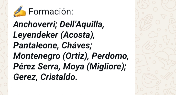 Bologna, Facello,Velázquez Mottes,Caldelara, Mellado, Cuellos, Meléndez, Cuevas,Cabral, Barbieri.