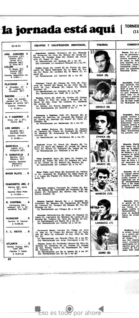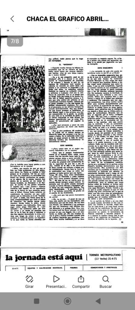 Joya historica del poeta;Según El Grafico Chacarita del 71 fue el mejor del año.