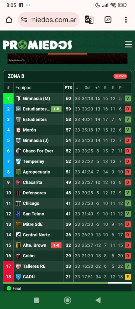 Chaca tiene que ganarle a gimnasia en jujuy.