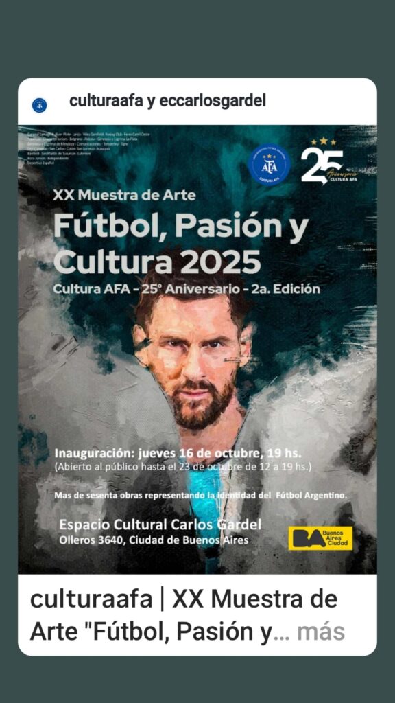 Muestra Arte Cultura AFA 2025 | Ven铆 a ver las obras de Chacarita desde hoy y hasta el 23/10 en el Centro Cultural Carlos Gardel | A pasitos de la sede!! 馃嚲馃嚜馃嚲馃嚜 |https://www.instagram.com/p/DP2gwmCkXpi/?igsh=eTZubnVxbDRtMWw0